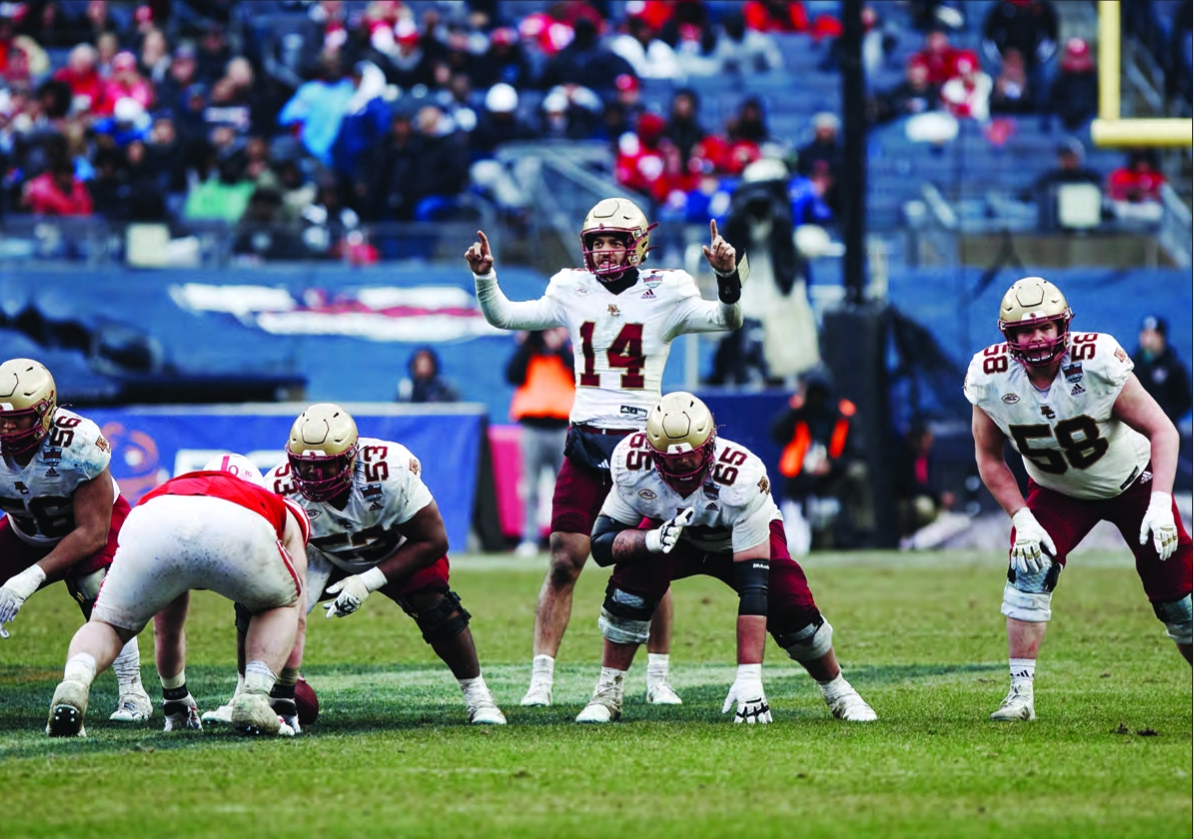 Boston College QB Grayson James calls an audible against the Cornhuskers.