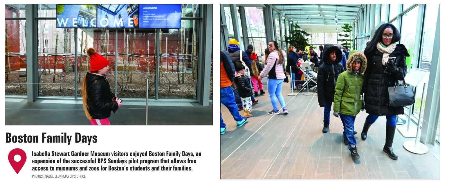 Boston Family Days Isabella Stewart Gardner Museum visitors enjoyed Boston Family Days, an expansion of the successful BPS Sundays pilot program that allows free access to museums and zoos for Boston’s students and their families. PHOTOS: ISABEL LEON/MAYOR’S OFFICE See also