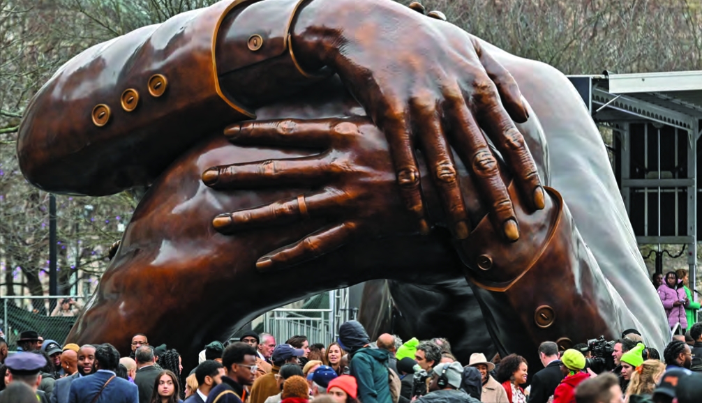 “The Embrace” sculpture honoring Dr. Martin Luther King Jr. and Coretta Scott King was unveiled on Boston Common on Jan. 13, 2023. In the two years since “The Embrace” was unveiled, Elizabeth Tiblanc has watched the sculpture come to mean so many different things to different people.