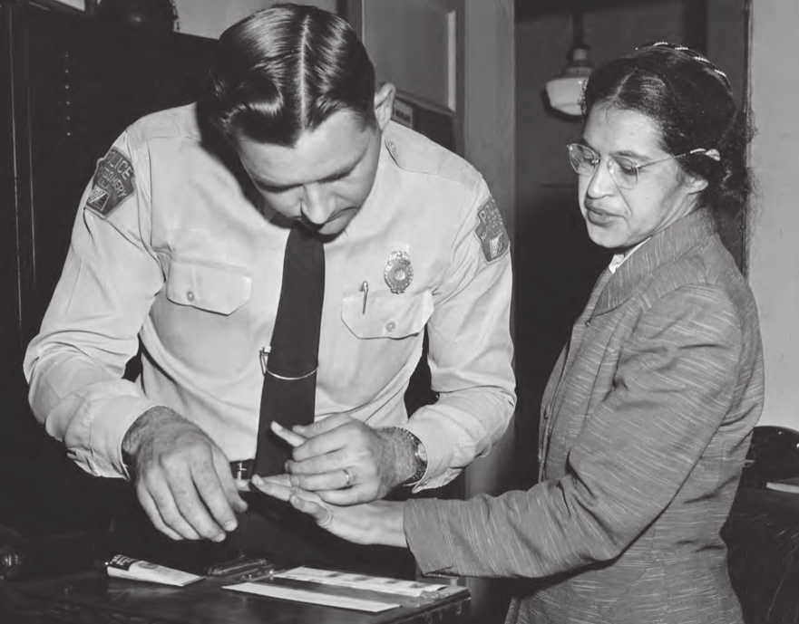 Rosa Parks is fingerprinted in Montgomery, Alabama, on December 1, 1955. She was arrested for refusing to give up her seat on a public bus to a white man. Parks’s action led to the 1955–56 Montgomery bus boycott, which is recognized as the spark that ignited the U.S. Civil Rights Movement.