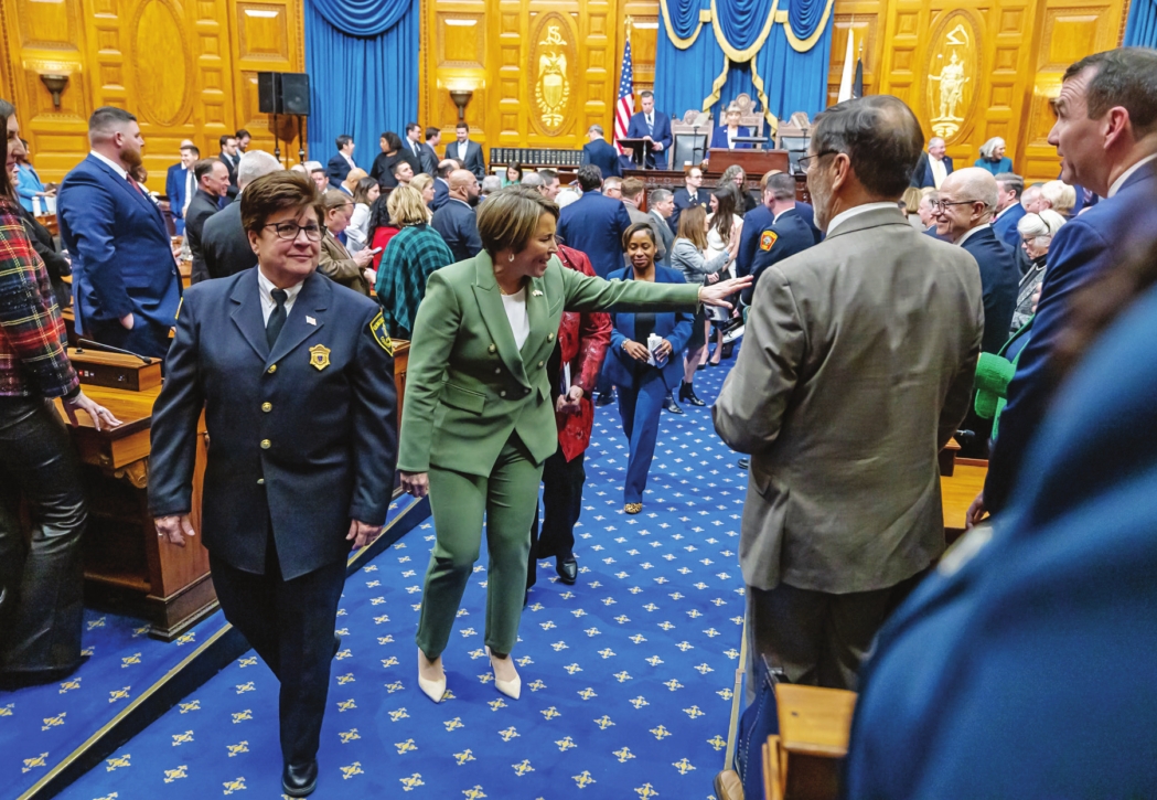 Governor Healy leaves the House Chamber after her State of the Commonwealth address.
