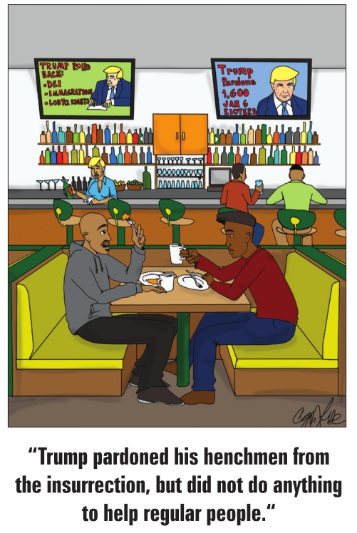“Trump pardoned his henchmen from the insurrection, but did not do anything to help regular people.“