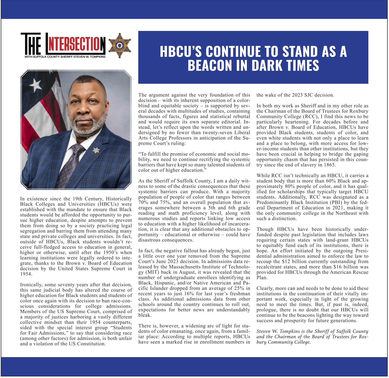 In both my work as Sheriff and in my other role as the Chairman of the Board of Trustees for Roxbury Community College (RCC), I find this news to be particularly heartening. For decades before and after Brown v. Board of Education, HBCUs have provided Black students, students of color, and even white students with not only a place to learn and a place to belong, with more access for lower-income students than other institutions, but they have been crucial in helping to bridge the gaping opportunity chasm that has persisted in this country since the end of slavery in 1865.