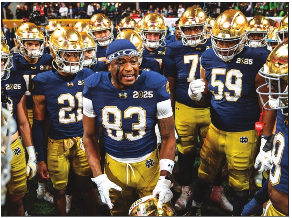 The Fighting Irish cut the deficit to 31-15 before kindling hope with their faithful with two fourth-quarter drives that made the game interesting. The first ended with a missed field goal with the ball ricocheting off the goalpost, a questionable call by Notre Dame head coach Marcus Freeman, who had that deer in the headlights look for most of the game. The second produced a 30-yard touchdown catch by the wideout Jaden Greathouse, who had six receptions, 128 yards, two touchdowns, and a two-point conversion, which cut the deficit to 31-23 with under five minutes left in the fourth quarter.