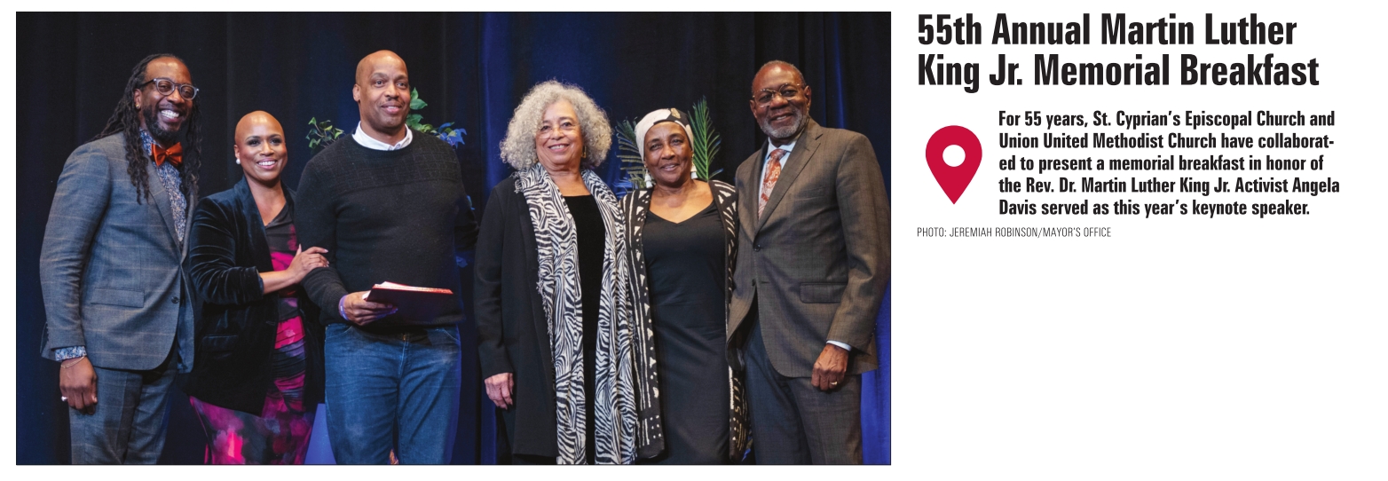 55th Annual Martin Luther King Jr. Memorial Breakfast For 55 years, St. Cyprian’s Episcopal Church and Union United Methodist Church have collaborated to present a memorial breakfast in honor of the Rev. Dr. Martin Luther King Jr. Activist Angela Davis served as this year’s keynote speaker. PHOTO: JEREMIAH ROBINSON/MAYOR’S OFFICE See also