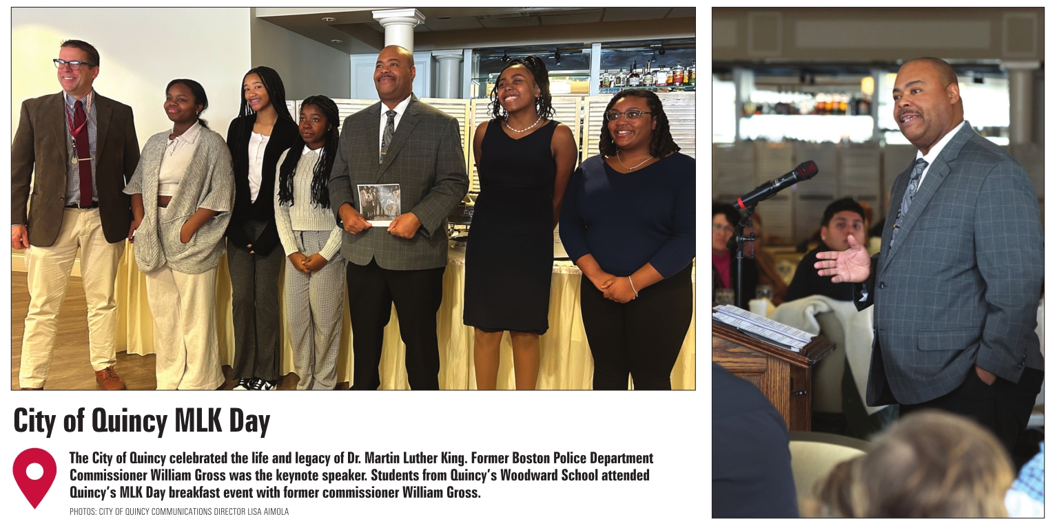 City of Quincy MLK Day The City of Quincy celebrated the life and legacy of Dr. Martin Luther King. Former Boston Police Department Commissioner William Gross was the keynote speaker. Students from Quincy’s Woodward School attended Quincy’s MLK Day breakfast event with former commissioner William Gross. PHOTOS: CITY OF QUINCY COMMUNICATIONS DIRECTOR LISA AIMOLA