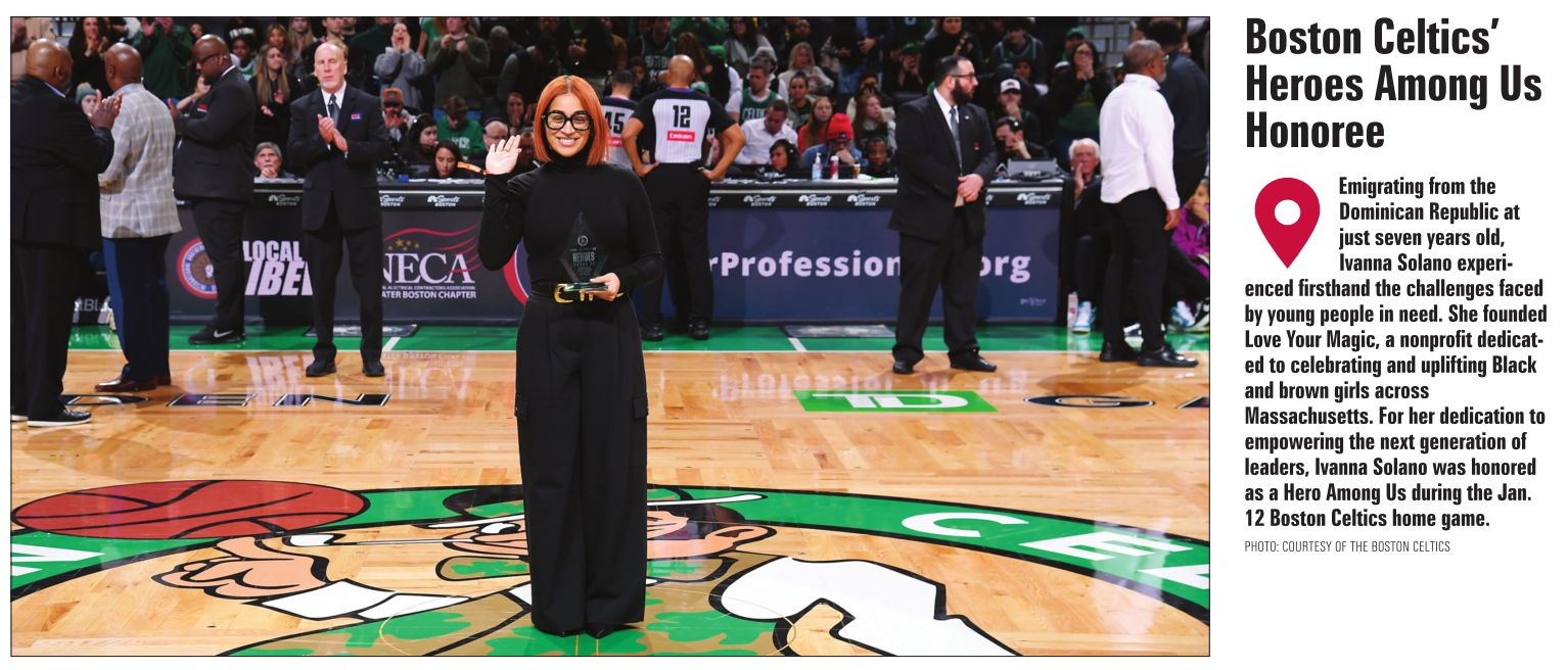 Emigrating from the Dominican Republic at just seven years old, Ivanna Solano experienced firsthand the challenges faced by young people in need. She founded Love Your Magic, a nonprofit dedicated to celebrating and uplifting Black and brown girls across Massachusetts. For her dedication to empowering the next generation of leaders, Ivanna Solano was honored as a Hero Among Us during the Jan. 12 Boston Celtics home game.