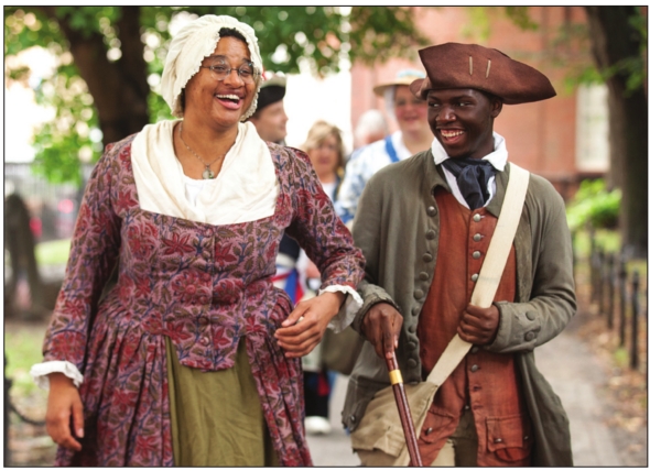 Actors portraying historical Black figures serve as tour guides on the African American Patriots tour.