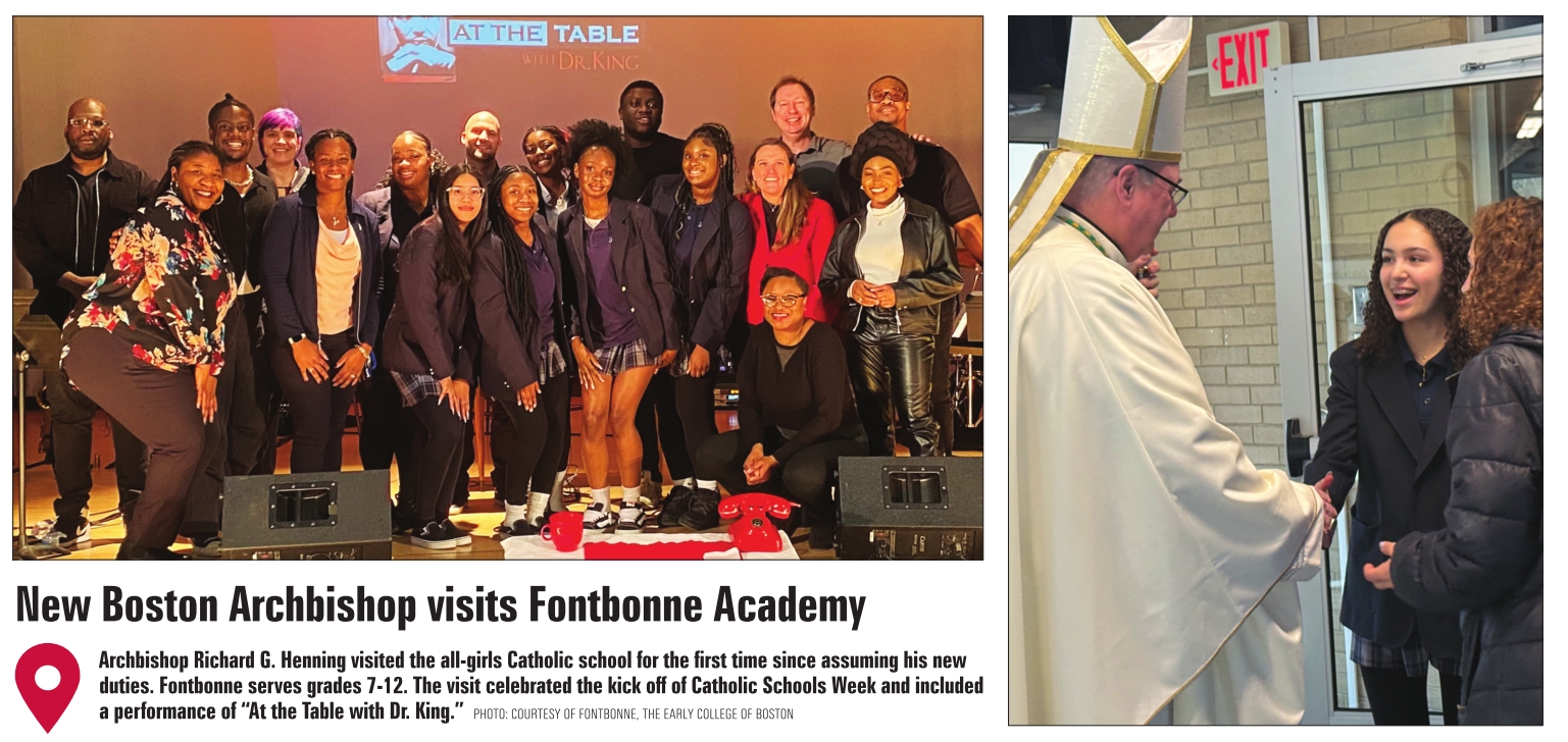 Archbishop Richard G. Henning visited the all-girls Catholic school for the first time since assuming his new duties. Fontbonne serves grades 7-12. The visit celebrated the kick off of Catholic Schools Week and included a performance of “At the Table with Dr. King.” PHOTO: COURTESY OF FONTBONNE, THE EARLY COLLEGE OF BOSTON