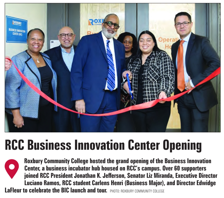 RCC Business Innovation Center Opening Roxbury Community College hosted the grand opening of the Business Innovation Center, a business incubator hub housed on RCC’s campus. Over 60 supporters joined RCC President Jonathan K. Jefferson, Senator Liz Miranda, Executive Director Luciano Ramos, RCC student Carlens Henri (Business Major), and Director Edwidge LaFleur to celebrate the BIC launch and tour. PHOTO: ROXBURY COMMUNITY COLLEGE See also