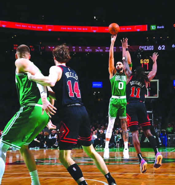 Jayson Tatum and Jalen Brown, the Celtics’ marquee All-Star performers, have seen their overall and three-point shooting percentages take a dip — Tatum to 47.1% overall and 37.6% from threepoint line 2023-2024, compared to 45.5% and 35.8% thus far this season; and Brown 49.9% overall and 35.4% from three-point range last season, compared to 46.1% and 32.2% to this point of the 2024-25 campaign.