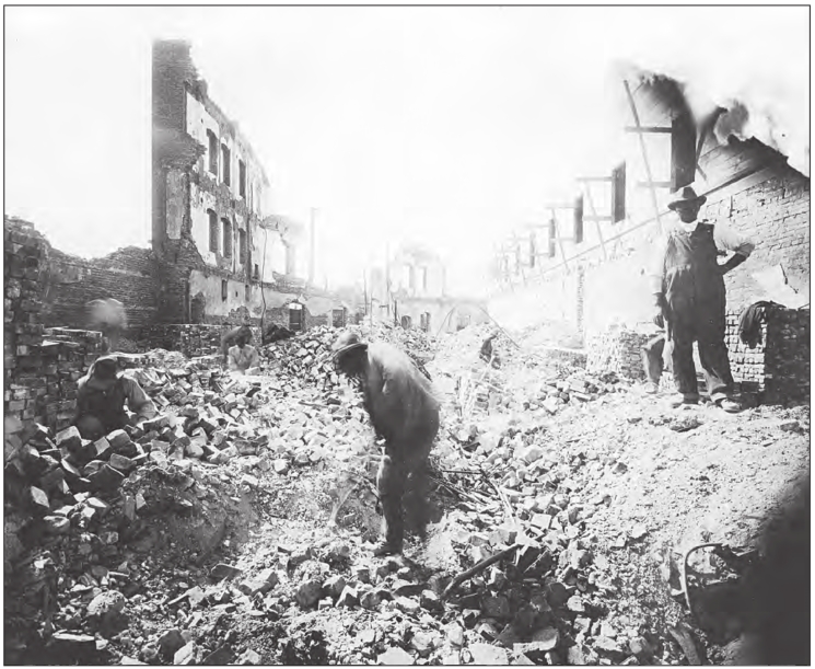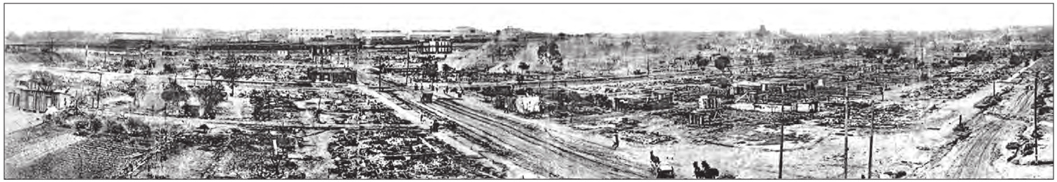 Panoramic view from the roof of Booker T. Washington High School showing the damage in the aftermath of the riot.