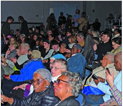 Community members fill the Roxbury Community College Auditorium, March 22, for a town hall event hosted by Rep. Ayanna Pressley.