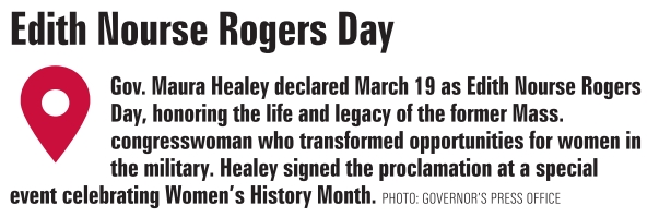 Gov. Maura Healey declared March 19 as Edith Nourse Rogers Day, honoring the life and legacy of the former Mass. congresswoman who transformed opportunities for women in the military. Healey signed the proclamation at a special event celebrating Women’s History Month. PHOTO: GOVERNOR’S PRESS OFFICE
