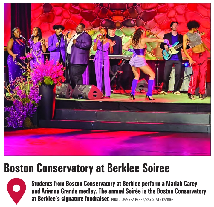 Students from Boston Conservatory at Berklee perform a Mariah Carey and Arianna Grande medley. The annual Soirée is the Boston Conservatory at Berklee’s signature fundraiser. PHOTO: JAMYRA PERRY/BAY STATE BANNER