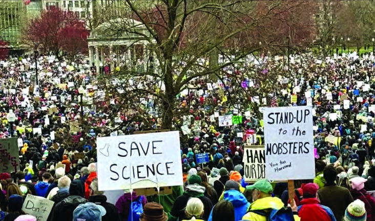 A large crowd gathered on Boston Common for a rally protesting the Trump administration. The crowd quickly grew Saturday morning as protestors gathered around the Parkman Bandstand at Boston Common for a “Hands Off!” rally and march. Organizers said they expected 25,000 people to attend.