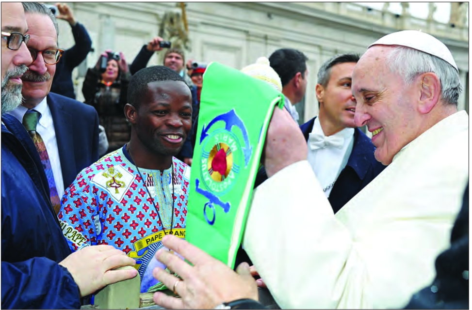 Pope Francis meets Fr. Celestin Ikomba, Apostleship of the Sea regional coordinator for West Africa. The Pope, who led the Catholic church since 2015, passed away on Easter Monday at the age of 88. He achieved many firsts by becoming pope. He was the first Latin American pope, the first from the Americas and the first born or raised outside of Europe since the 8th century. His funeral will be held on Saturday, April 26. Read more about Pope Francis, page 7. See also