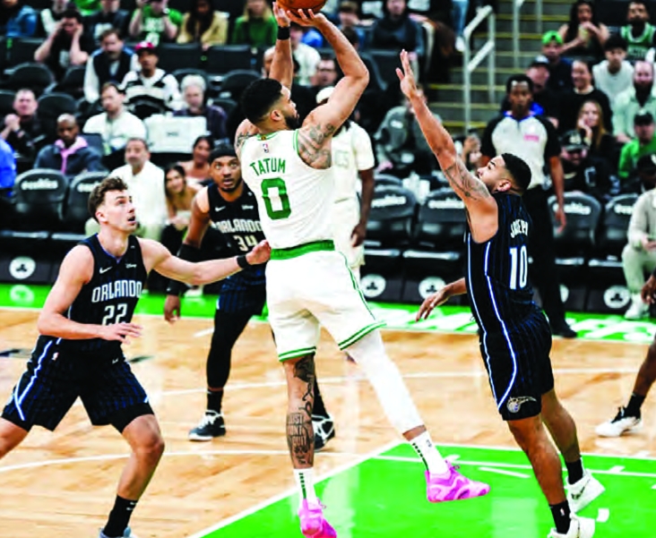 The Celtics began their march to NBA title No. 19 with a convincing 103-86 win over the Orlando Magic in game one of their bestof-seven first-round playoff series. The Magic are the seventh seed in the Eastern Conference, following their 120-95 victory over the Atlanta Hawks in the play-in portion of the NBA playoffs.