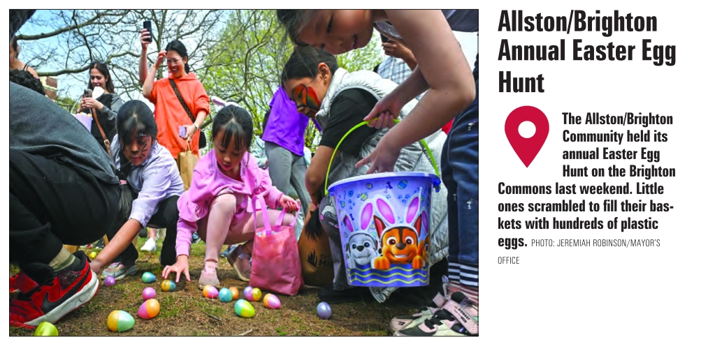 Allston/Brighton Annual Easter Egg Hunt The Allston/Brighton Community held its annual Easter Egg Hunt on the Brighton Commons last weekend. Little ones scrambled to fill their baskets with hundreds of plastic eggs. PHOTO: JEREMIAH ROBINSON/MAYOR’S OFFICE See also