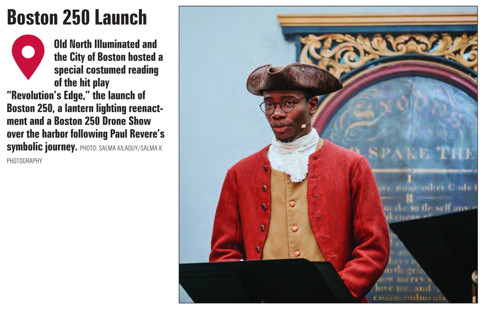 Old North Illuminated and the City of Boston hosted a special costumed reading of the hit play “Revolution’s Edge,” the launch of Boston 250, a lantern lighting reenactment and a Boston 250 Drone Show over the harbor following Paul Revere’s symbolic journey. PHOTO: SALMA KILAOUY/SALMA K