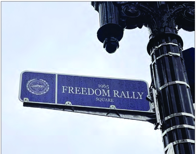 Wu formally dedicated that corner as the “1965 Freedom Rally Square,” which is designated with a blue sign on the light pole.