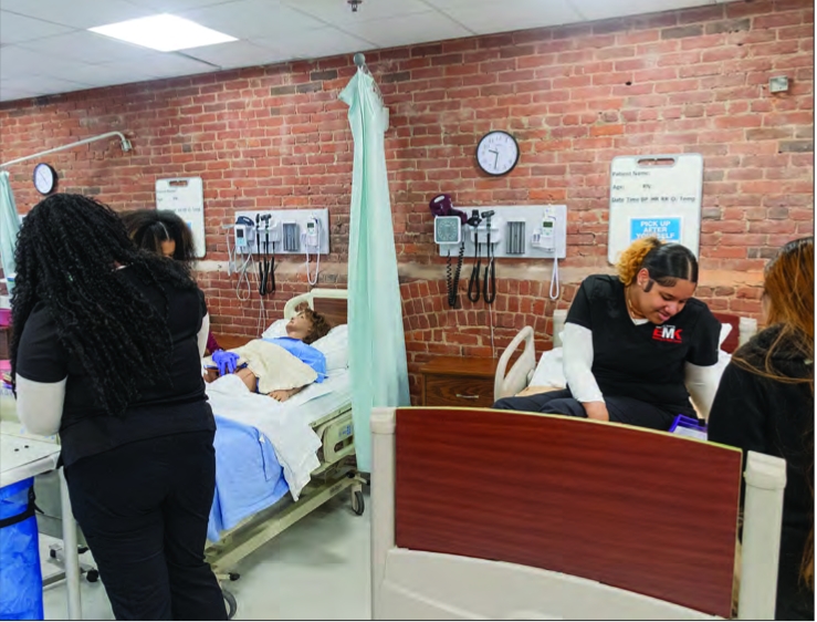 Juniors at Edward M. Kennedy Academy for Health Careers practice skills during a bootcamp to prepare for the certified nursing exam that they’re scheduled to take in May. Students described the program as a way to help them jumpstart careers in nursing and healthcare.