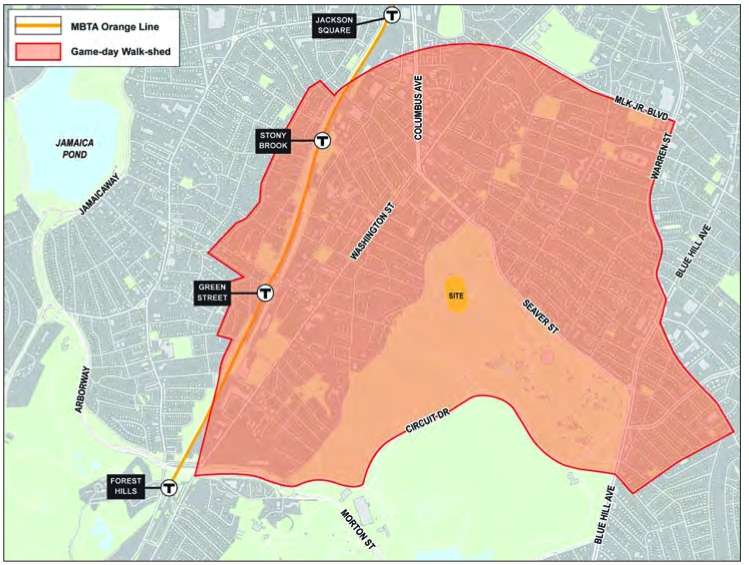 stadium from such parking areas and MBTA stations. The plan calls for a