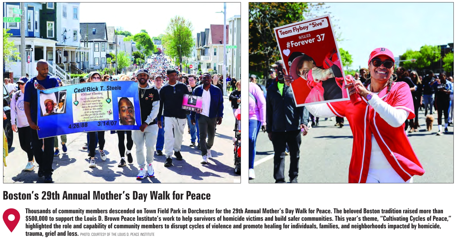Thousands of community members descended on Town Field Park in Dorchester for the 29th Annual Mother’s Day Walk for Peace. The beloved Boston tradition raised more than $500,000 to support the Louis D. Brown Peace Institute’s work to help survivors of homicide victims and build safer communities. This year’s theme, “Cultivating Cycles of Peace,” highlighted the role and capability of community members to disrupt cycles of violence and promote healing for individuals, families, and neighborhoods impacted by homicide, trauma, grief and loss. PHOTO: COURTESY OF THE LOUIS D. PEACE INSTITUTE