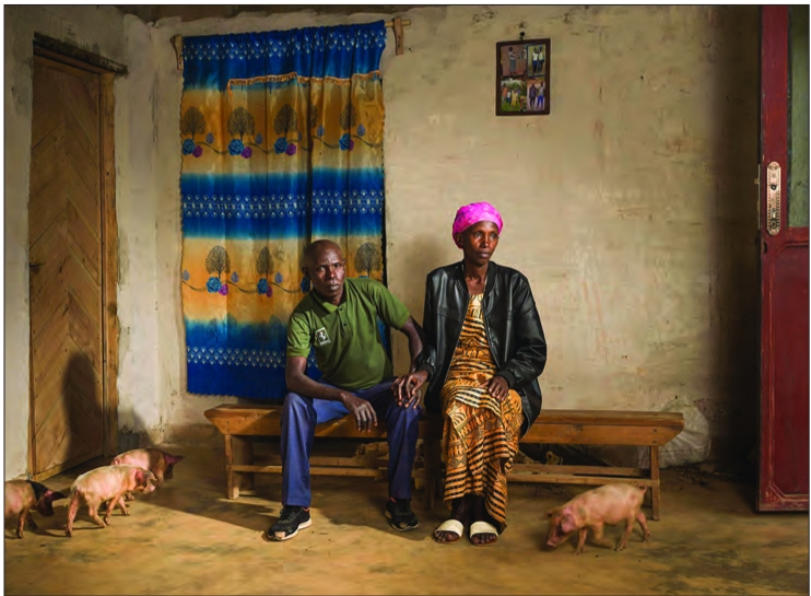 Among the surprises Banning relishes is the appearance of piglets in his portrait of survivor Marianna Nyirantgorama and Marc Nyandekwe, a neighbor who killed her sister. “I started to photograph and in come the piglets. Marianna tried to send them out. I asked her to please let them stay. This tension between the underlying drama and the absolute banality of these piglets was to me indicating that in spite of all these horrors, life goes on.”