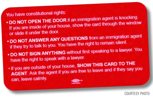 door, she said, the resident should present a Know Your Rights card — a