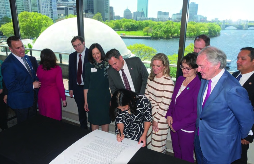 Mayor Michelle Wu (center) signs the Greater Boston Metropolitan Mayors