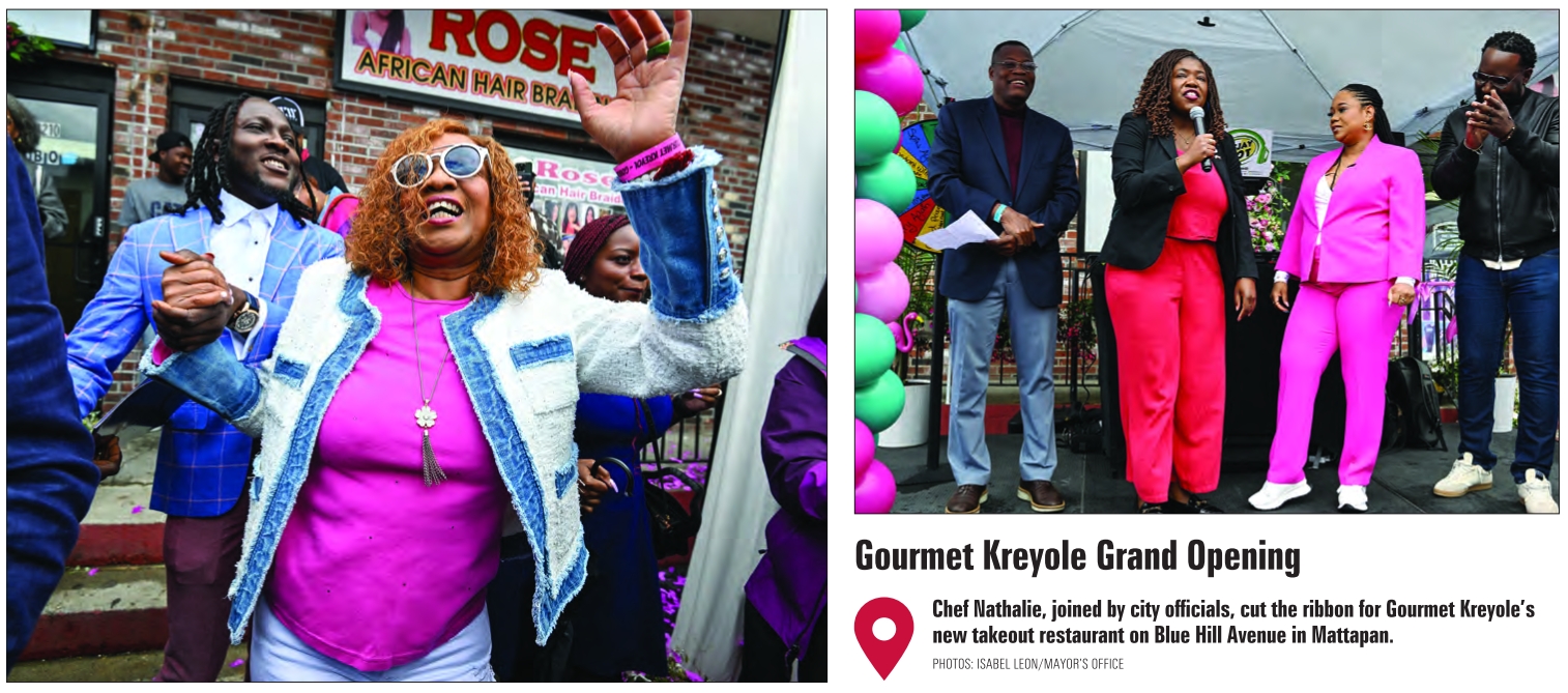 Chef Nathalie, joined by city officials, cut the ribbon for Gourmet Kreyole’s new takeout restaurant on Blue Hill Avenue in Mattapan.