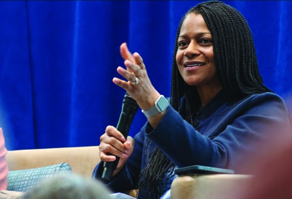 Dr. Bisola Ojikutu, Boston commissioner of public health, moderates a panel at the Health Equity Trends Summit, June 6, 2024.