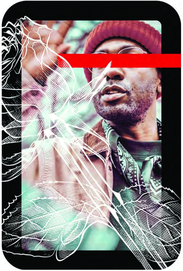 Artist Sean “2ruTh7” Evelyn, shown in this image, says “The abstract nature of [this] photo seeks to capture the experience of erasure that our target population for this project experience as survivors and/or enactors of violence.”