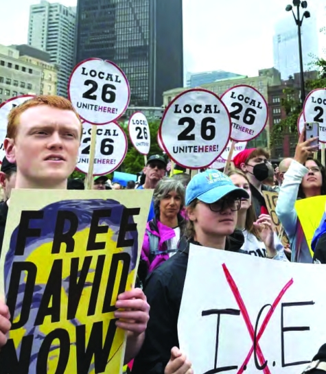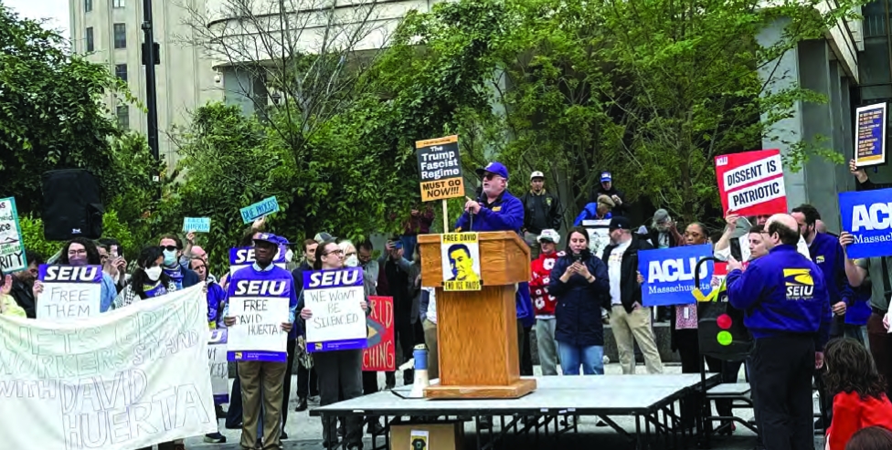 “David Huerta was peacefully exercising his constitutional rights, lawfully observing immigration activity in his community when ICE violently arrested him,” said Massachusetts AFL-CIO president Chrissy Lynch, who leads the state’s largest labor federation. “He was doing what unions always do … and what this country was founded on — speaking out against injustice.”
