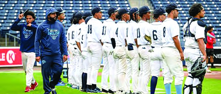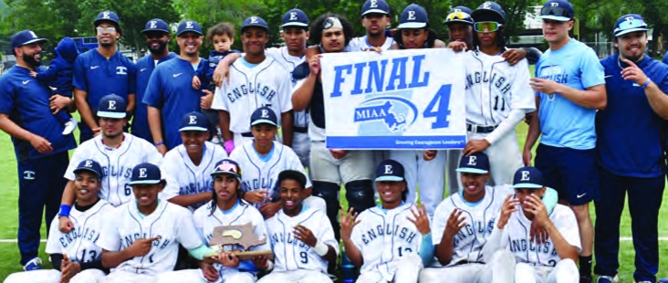 The Boston English baseball team is introduced before their MIAA tournament game.