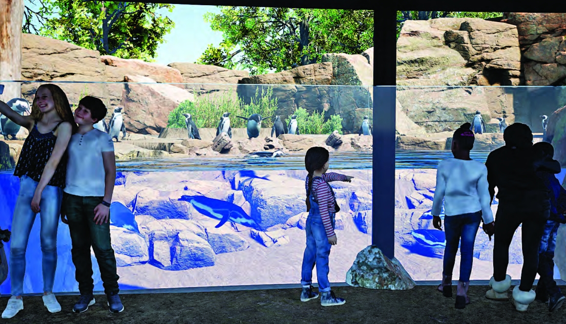 Geothermal system in the works: A rendering shows an under-construction habitat for African penguins at the Franklin Park Zoo, slated to be opened in spring 2026. The habitat will be heated and cooled using a geothermal system to increase energy efficiency.