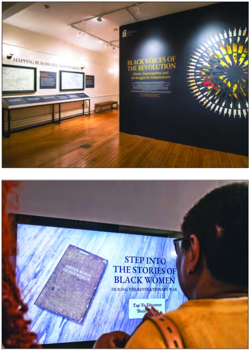 A visitor to the “Black Voices of the Revolution” exhibition at MAAH tries one of the interactivve displays.In the midst of the MA250 celebrations exploring the history of the American Revolution and the establishment of the United States, Boston’s Museum of African American History (MAAH) has launched an exhibition exploring Black experiences during the revolutionary period.