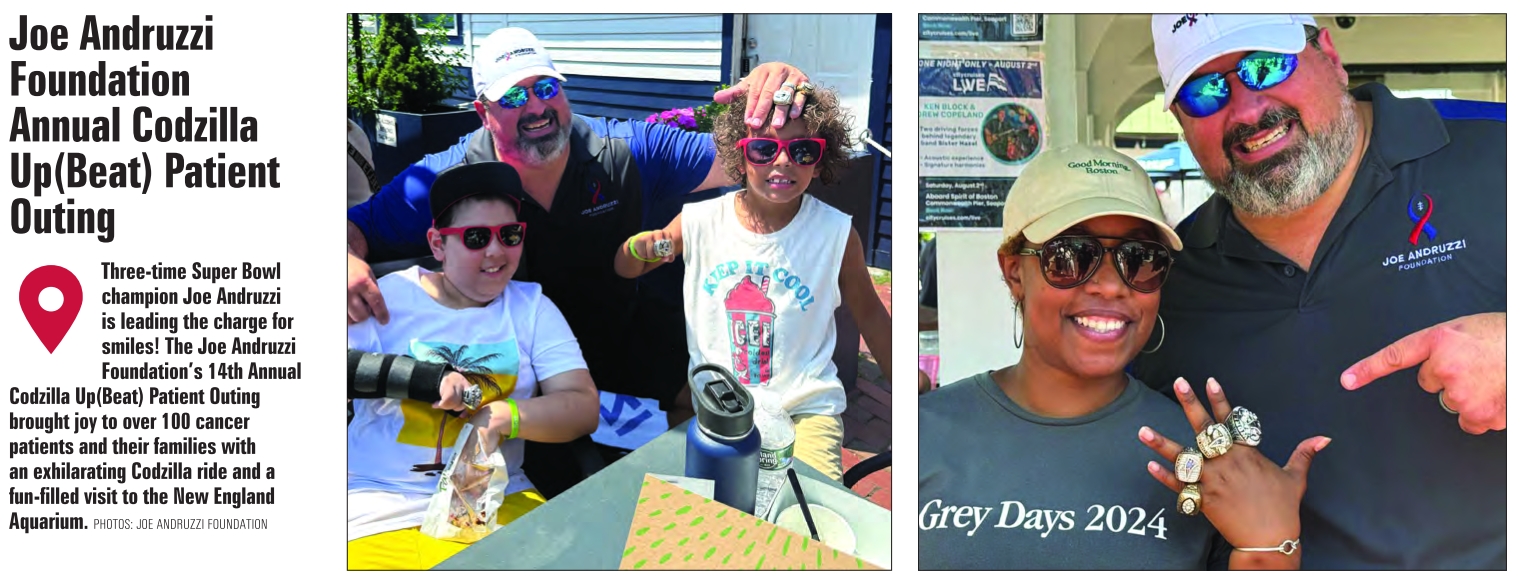 Joe Andruzzi Foundation Annual Codzilla Up(Beat) Patient Outing Three-time Super Bowl champion Joe Andruzzi is leading the charge for smiles! The Joe Andruzzi Foundation’s 14th Annual Codzilla Up(Beat) Patient Outing brought joy to over 100 cancer patients and their families with an exhilarating Codzilla ride and a fun-filled visit to the New England Aquarium. PHOTOS: JOE ANDRUZZI FOUNDATION