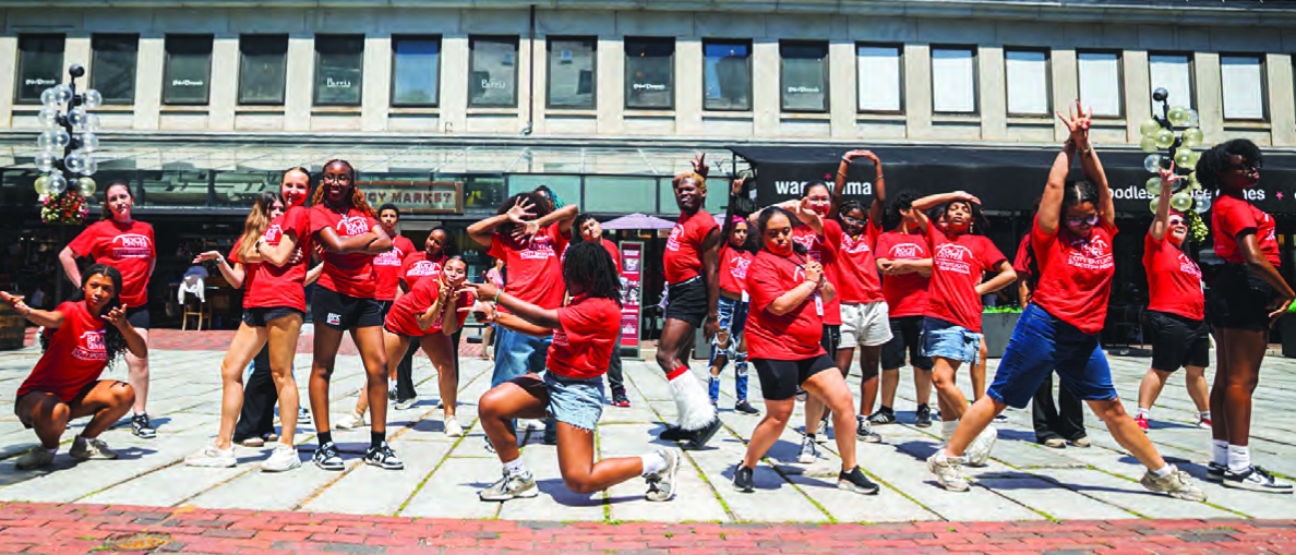 On a piping hot Wednesday in July, 39 Boston teens clad in matching red T-shirts took to the city streets for a series of high-energy flash mob dance performances. This choreographed performance wasn’t just for fun; it was a crucial part of their summer job.
