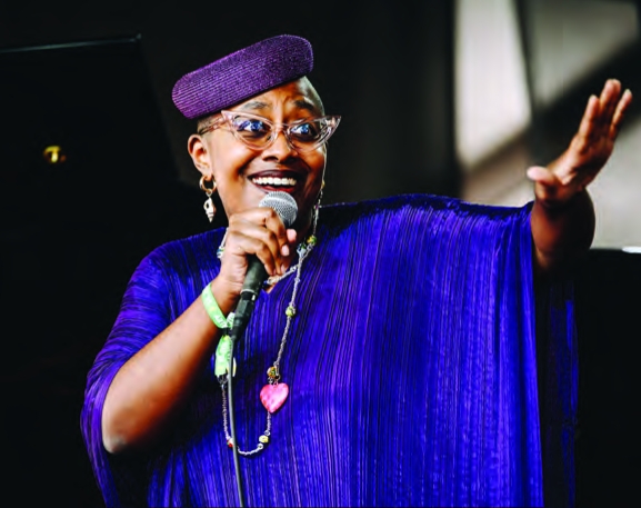 Regal and elegant in attire as well as in bearing, Salvant wore a purple pillbox hat and silk shawl and radiated warmth, humor and spontaneity. After mining emotional depth in the 20th century Broadway show tunes “Don’t Rain on my Parade” and “With Every Breath I Take,” Salvant performed “Changeable Daddy of Mine,” evoking a landmark 1924 recording by Margaret Johnson and Clarence Williams Blue Five, with strong solos by pianist Fortner and percussionist Poole.