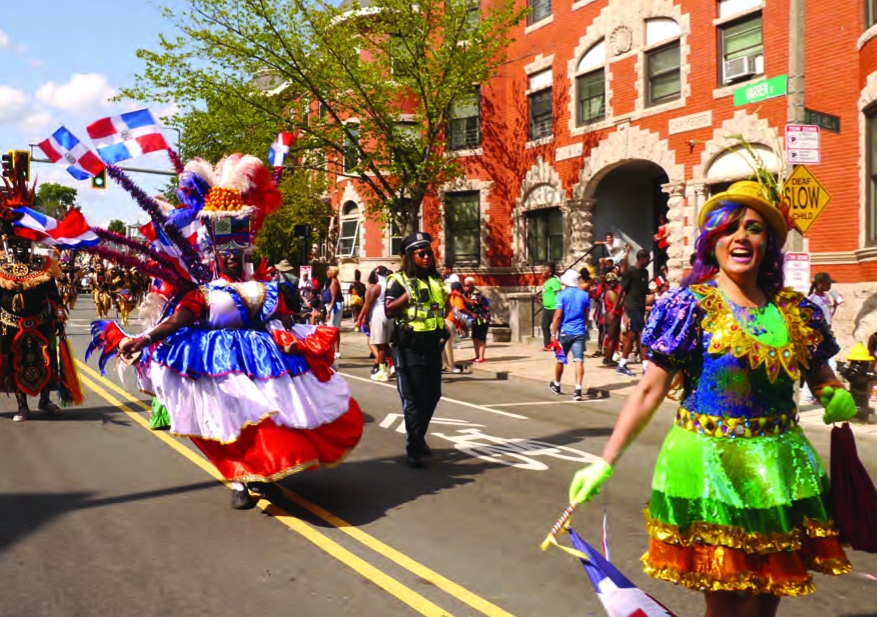 (Above) The Soca and Associates children’s presentation, Futuristic Fantasy. (Below) Members of the Dominican masquerade band, Tribu Cimbao on Warren Street.