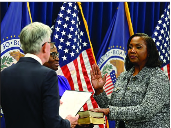 Dr. Cook is sworn in by Federal Reserve Chair Jerome Powell.