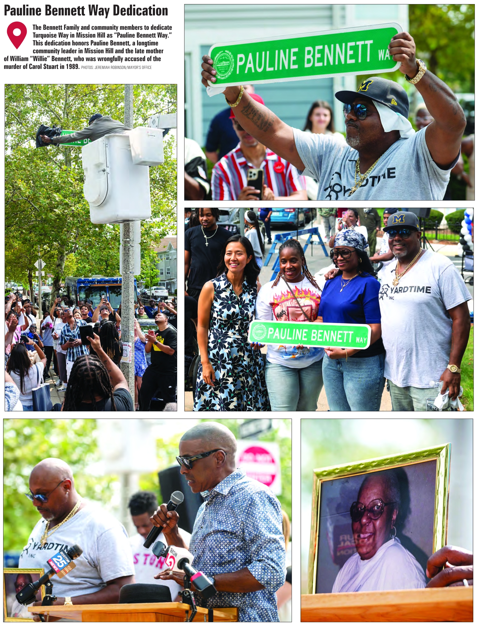 The Bennett Family and community members to dedicate Turquoise Way in Mission Hill as “Pauline Bennett Way.” This dedication honors Pauline Bennett, a longtime community leader in Mission Hill and the late mother of William “Willie” Bennett, who was wrongfully accused of the murder of Carol Stuart in 1989. PHOTOS: JEREMIAH ROBINSON/MAYOR’S OFFICE