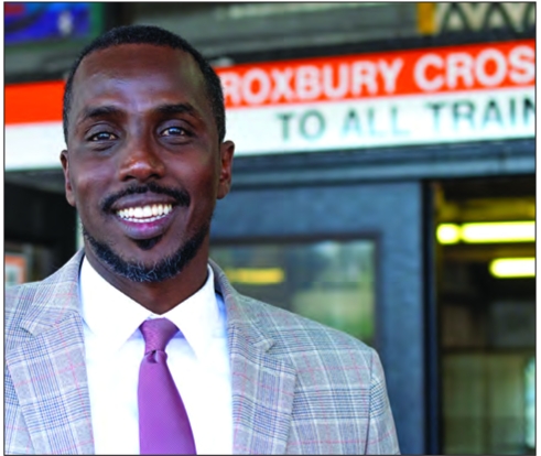 District 7 City Council candidate Said Ahmed poses for a photo at Roxbury Crossing, Sept. 16. Ahmed came in first of 11 candidates in the Sept. 9 preliminary election.