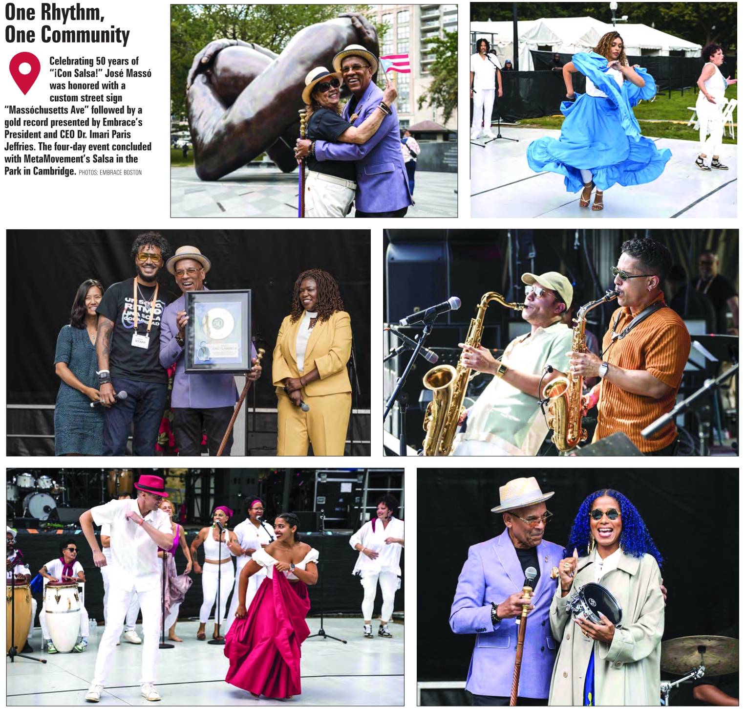 One Rhythm, One Community Celebrating 50 years of “¡Con Salsa!” José Massó was honored with a custom street sign “Massóchusetts Ave” followed by a gold record presented by Embrace’s President and CEO Dr. Imari Paris Jeffries. The four-day event concluded with MetaMovement’s Salsa in the Park in Cambridge. PHOTOS: EMBRACE BOSTON See also