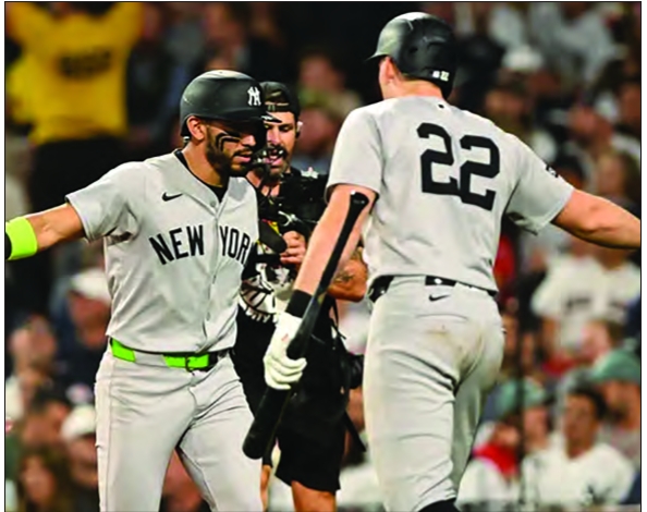 Cody Bellinger’s clutch double off Sox closer and former Yankee Aroldis Chapman drove in Judge with the insurance run of a 5-3 triumph. All that stood between a Yankees series sweep was Red Sox Ace Garrett Crochet. The hard-throwing left-hander stoned the Yankees, striking out 12 in six innings of work. His teammates gave him all the run support he would need in the form of a six-run, first-inning explosion. The Yanks got home runs from Judge (his fifth home run in six games and 363rd of his career), Ahmed Rosario and Jose Caballero to get as close as 6-4 before strong relief pitching from Jason Whitlock and Aroldis Chapman, getting his 30th save, shut the door on the Yanks.