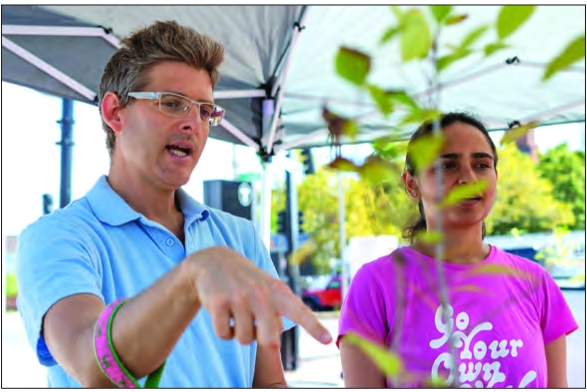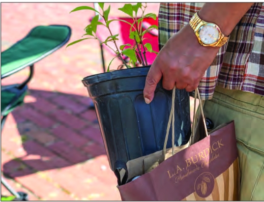 Mission Hill resident Roderick Kersey holds a free plant at a tree and shrub giveaway hosted by Zoo New England during the Roxbury Crossing Farmers Market, Sept. 19. The giveaway was part of a zoo-run partnership aimed at increasing tree canopy in Dorchester and Roxbury.