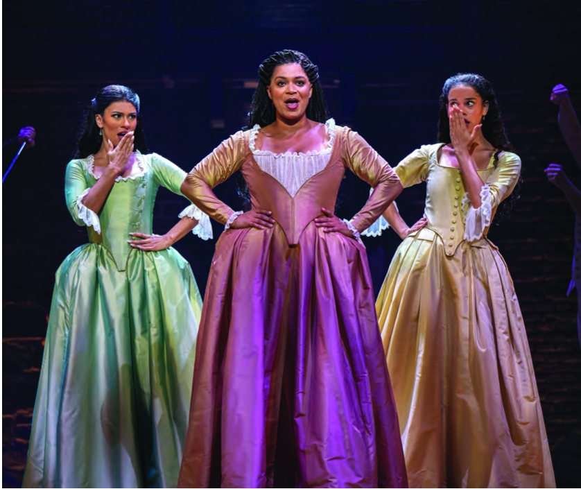 From left: Lauren Mariasoosay, Marja Harmon and Lily Soto in “Hanilton” National Tour.