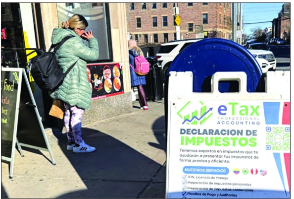 A tax preparation advertisement outside of an office in East Boston.A group of immigration and tax advocates have sued to block two federal agencies from sharing taxpayer information with U.S. Immigration and Customs Enforcement, arguing that sharing that data violates privacy laws and may lead to wrongful arrests.